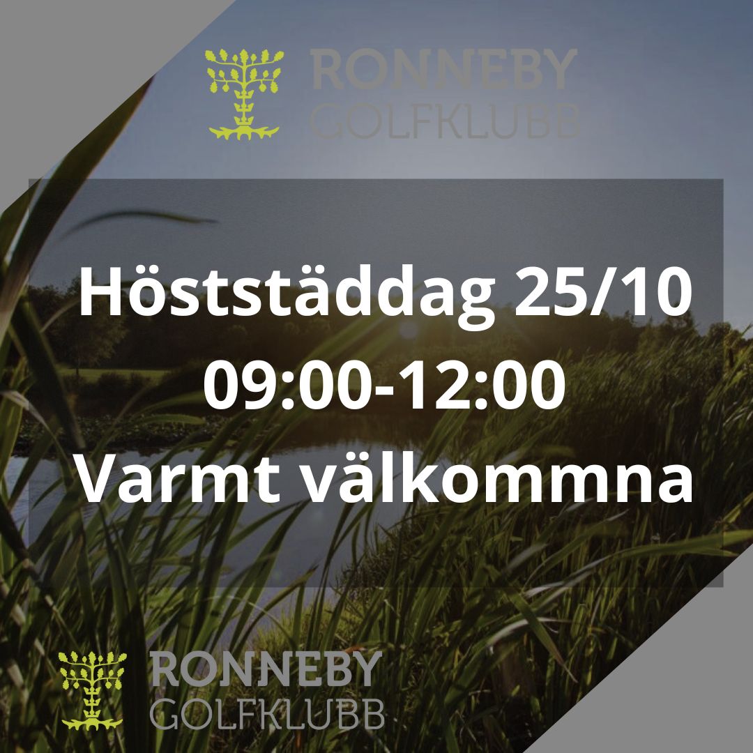 Varmt välkomman till höstens städdag 25/10 Samling 08:45 på puttinggreen för avprickning Städning 09:00 – 12:00 Korvgrillning 12:00 Arbetsuppgifterna för dagen räfsa löv och grenar, …