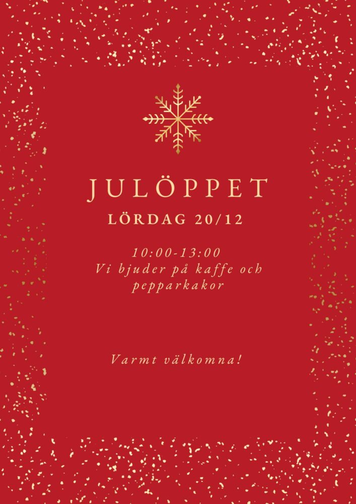 Lördag 20/12 mellan klockan 10:00 och 13:00 håller vi julöppet i shopen med riktigt bra erbjudanden. Vad sägs om upp till 50% på klubbor, upp till 70% på kläder, 30 % på bagar och 50% på skor.