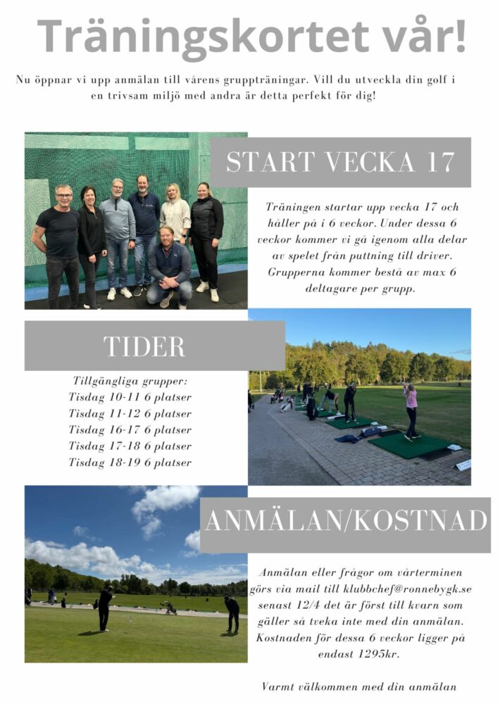 Vill du vara med och utvecklas tillsammans med andra anmäler du dig med namn, golf-id och vilket tid du skulle vilja träna till klubbchef@ronnebygk.se